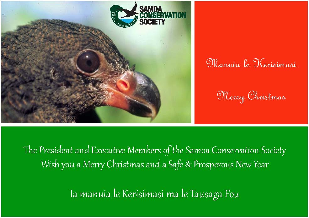 The President, Sala Josephine Stowers-Fiu and the Executive Committee members – Leilani Iosefa, Lagipoiva Cherelle Jackson, Juney Ward, James Atherton, Leatigaga Mark Bonin & Posa Skelton of the Fa’asao Samoa / Samoa Conservation Society would like to wish all our members, families, friends and supporters a Merry Christmas and a Happy New Year.