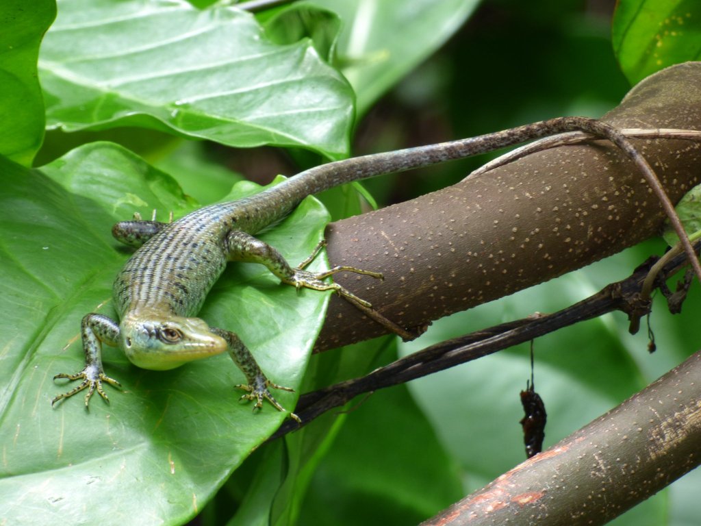 Samoa has only 14 species of native land reptiles like this Samoan skink: Pili Lape (Emoia samoensis), once thought to be endemic to Samoa but recently found in Tonga too.