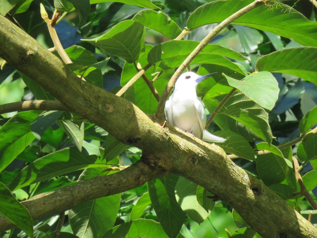 Sea birds like this Manu Sina (White tern), would have flown here deliberately or were blown here in a storm. They can carry seeds on their feathers or in their stomachs or even on their legs as was discovered by Charles Darwin 160 years ago. Manu Sina lay their eggs high on tree branches, where they may have better protection from rat predation. Around 20 sea bird species have been observed in Samoa but most are poorly studied and their Samoan breeding locations are unknown.