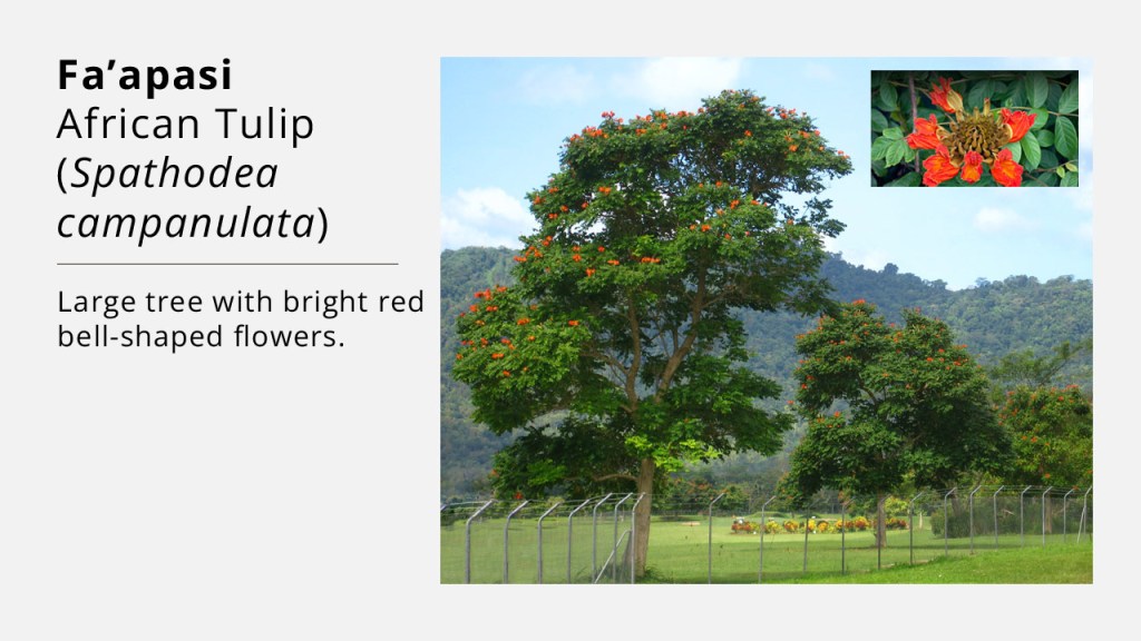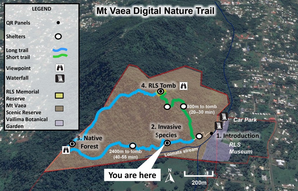 This is the second of four digital information panels along the Mt Vaea trail – two on the short trail and two on the long trail. Digital tree identification labels have also been placed on many of the prominent invasive trees.