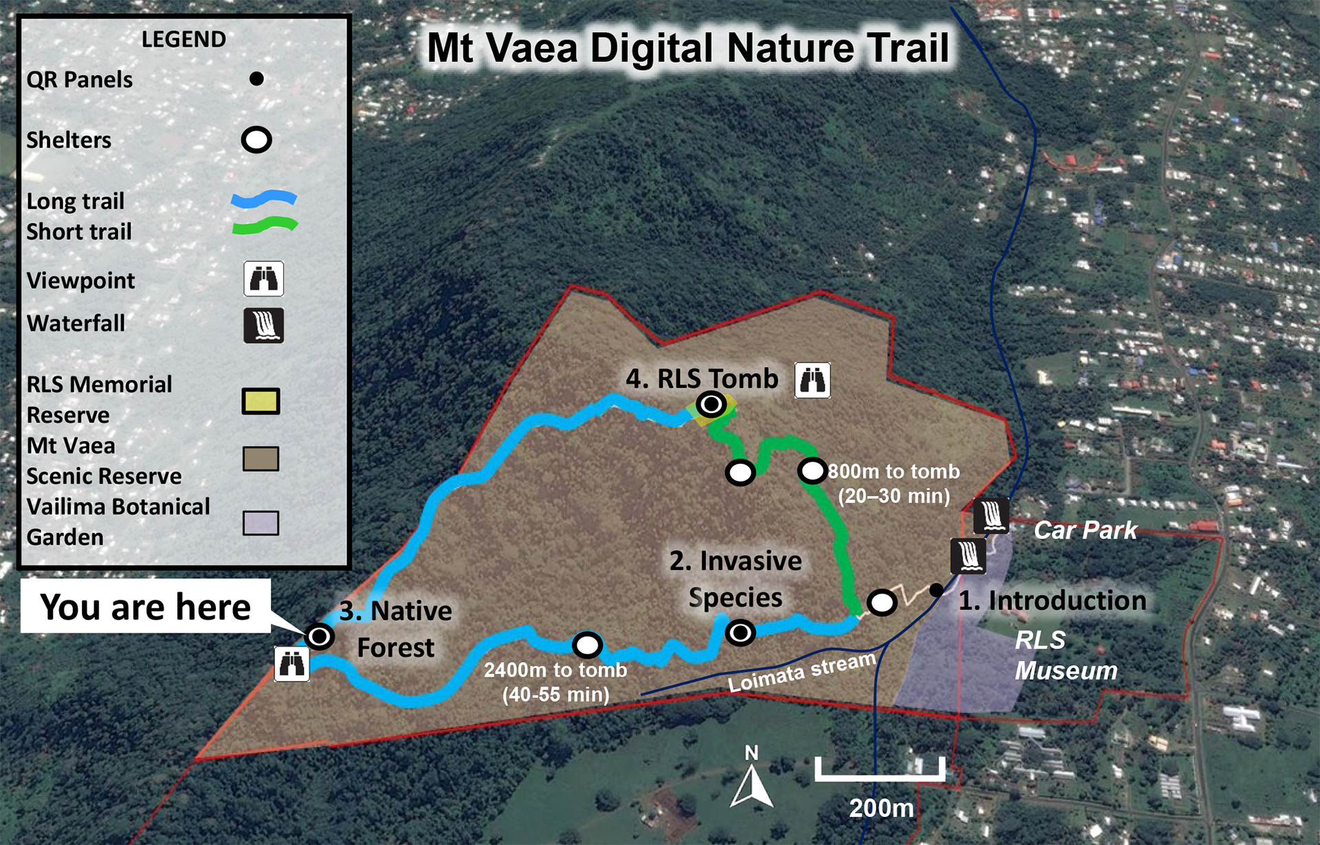 This is the third of four digital information panels along the Mt Vaea trail- two on the short trail and two on the long trail. Digital tree identification labels have also been placed on many of the prominent trees.