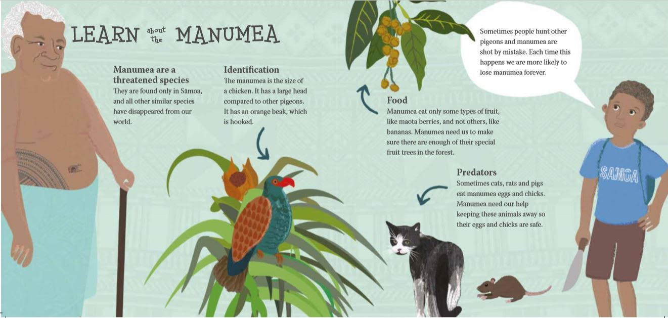 The Manumea faces severe threats from habitat loss, hunting, and predation by invasive species. Recognising the urgency of the situation, the Samoa Conservation Society (SCS) launched its Manumea Conservation Project in 2021, employing a dedicated staff to coordinate these critical efforts. This builds upon the earlier Manumea Campaign Strategy 2019, which sought to raise awareness and address gaps identified in the Manumea Recovery Plan 2020–2029. Together, these initiatives form the foundation of Samoa Conservation Society’s (SCS) ongoing conservation work, undertaken in collaboration with the Ministry of Natural Resources and Environment (MNRE).